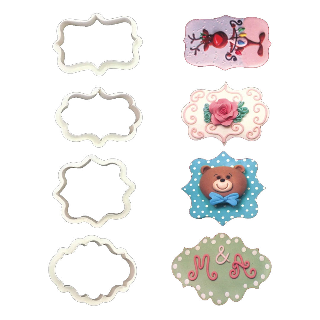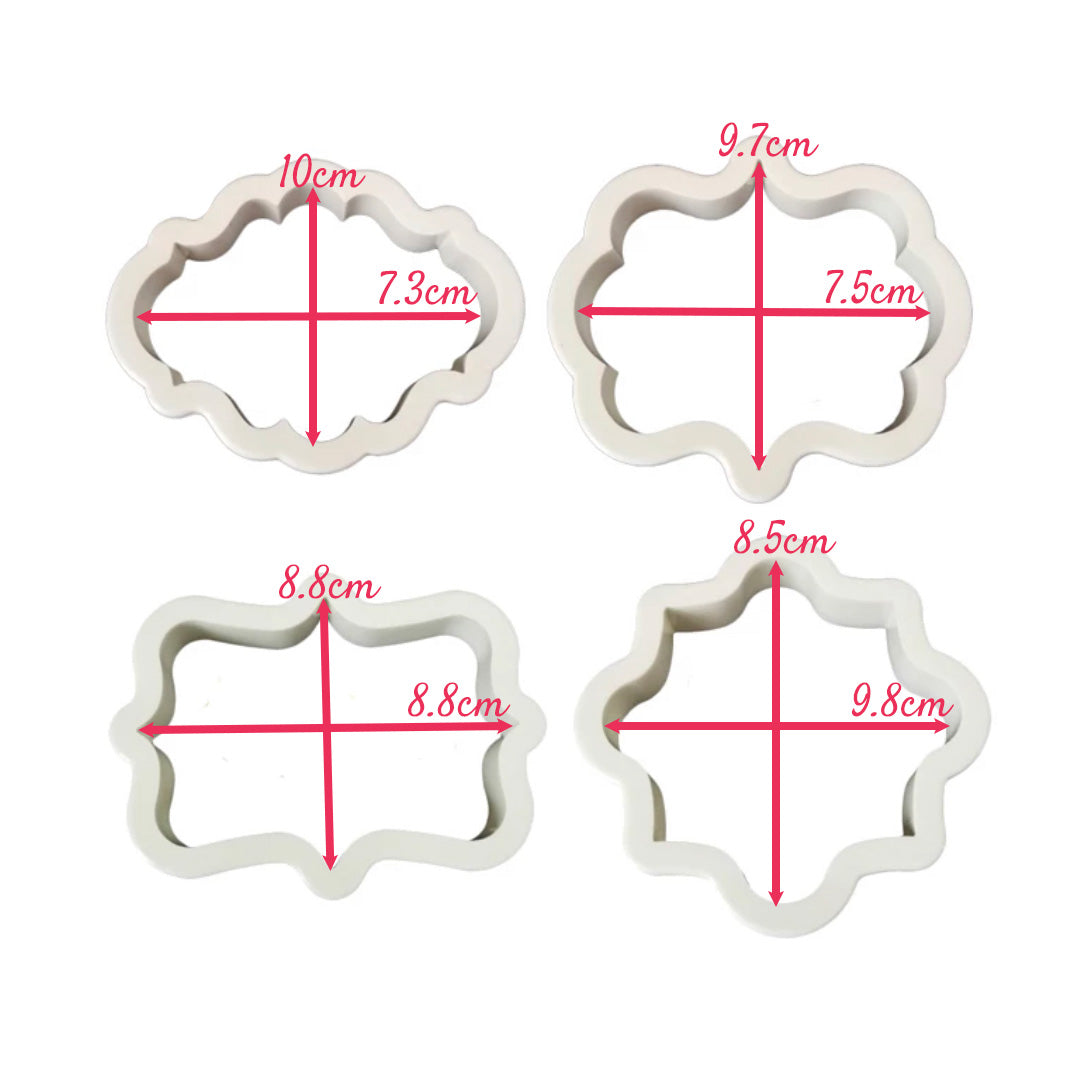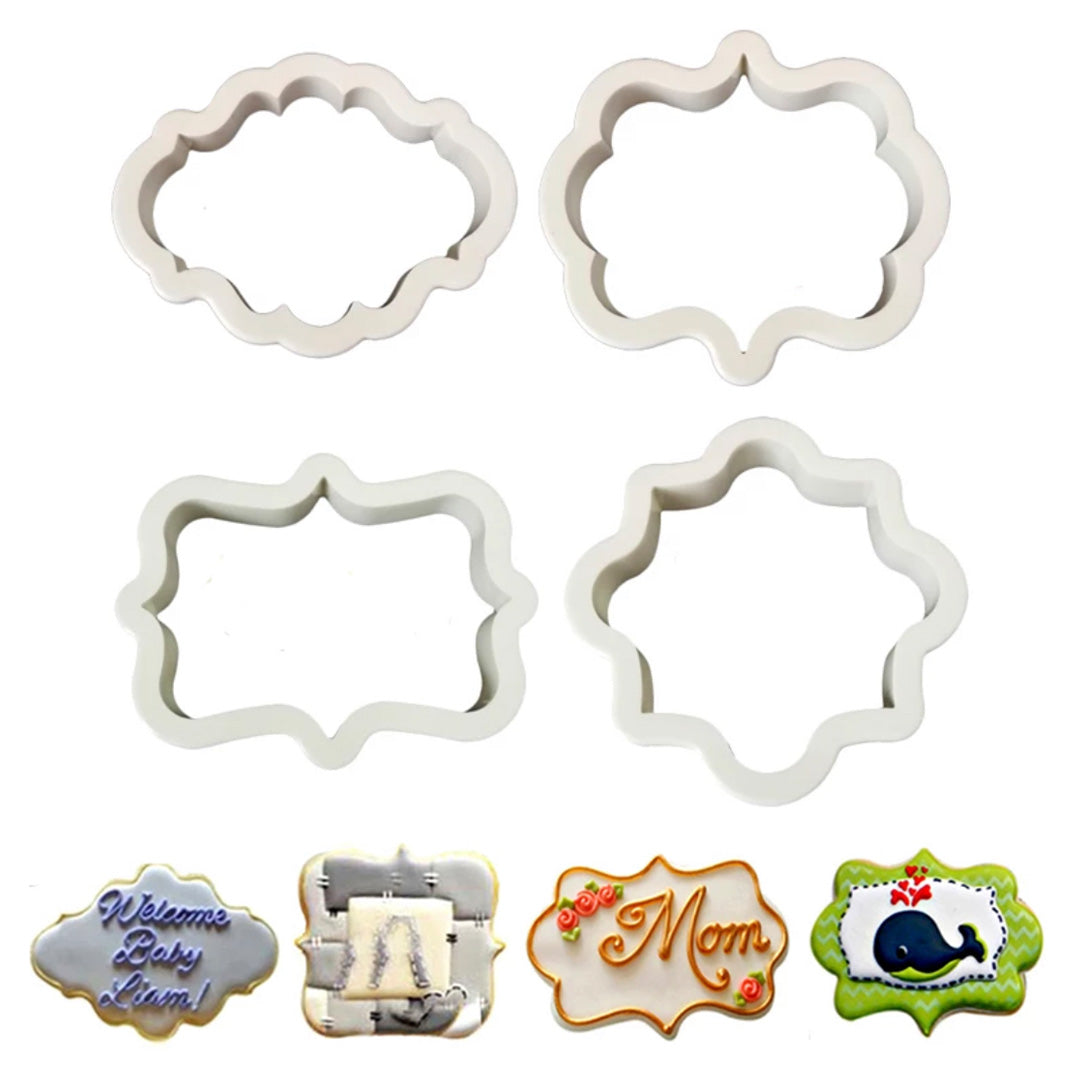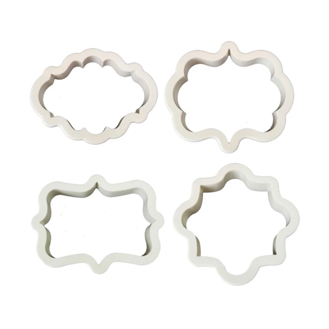 🖼️✨ ¡Enmarca tus creaciones con elegancia! Este set incluye 4 cortadores con formas de marco, cada uno con un estilo decorativo distinto, ideales para crear etiquetas comestibles, bases para mensajes en fondant, apliques en pasta de goma, decoraciones para galletas, cupcakes, tortas y más.