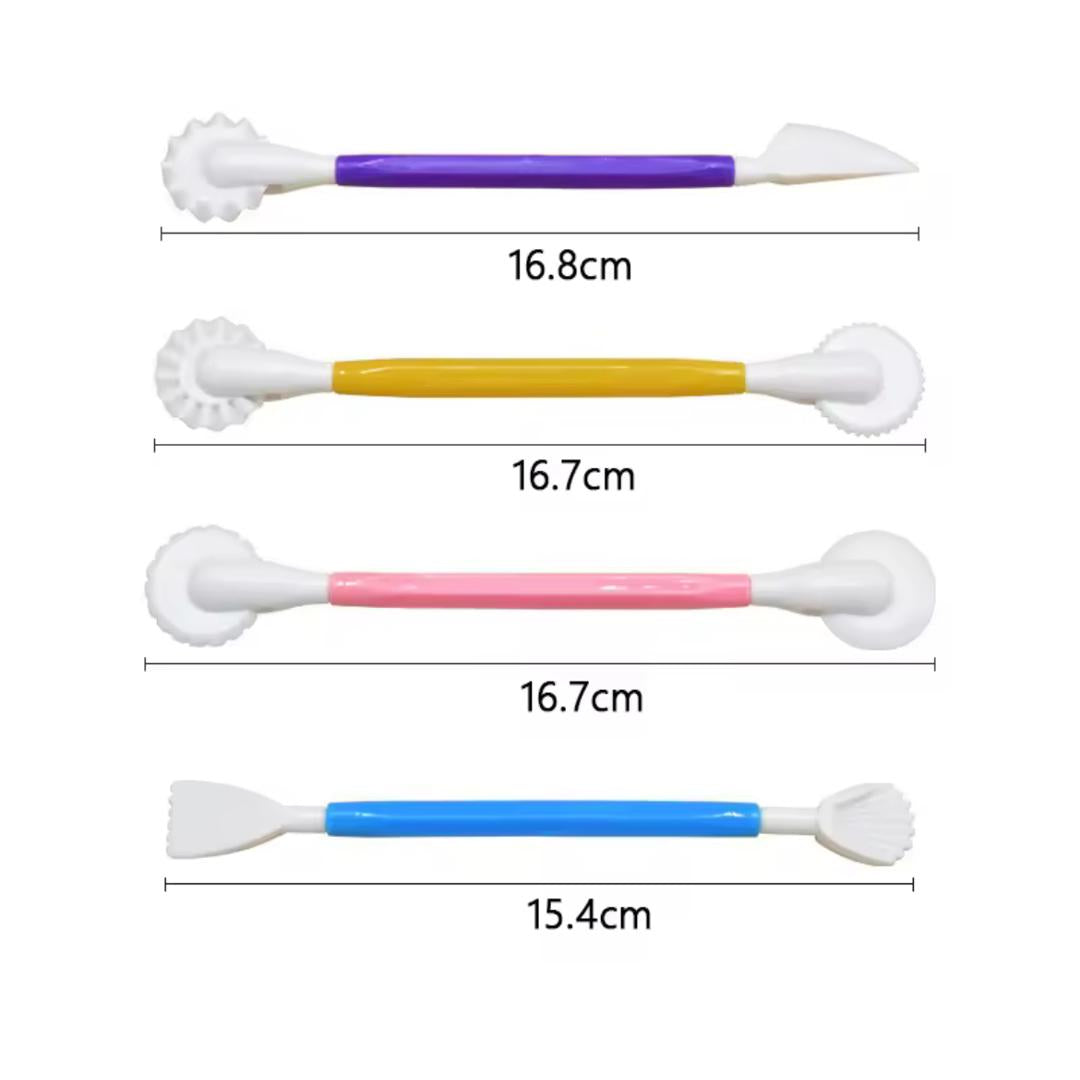 🎨✨ ¡Potencia tu creatividad con precisión! Este set de 4 herramientas de doble punta ofrece 8 funciones distintas para modelar, cortar, perfilar y marcar detalles sobre fondant, pasta de goma, mazapán o arcilla polimérica, permitiéndote lograr decoraciones finas y profesionales en cada proyecto.