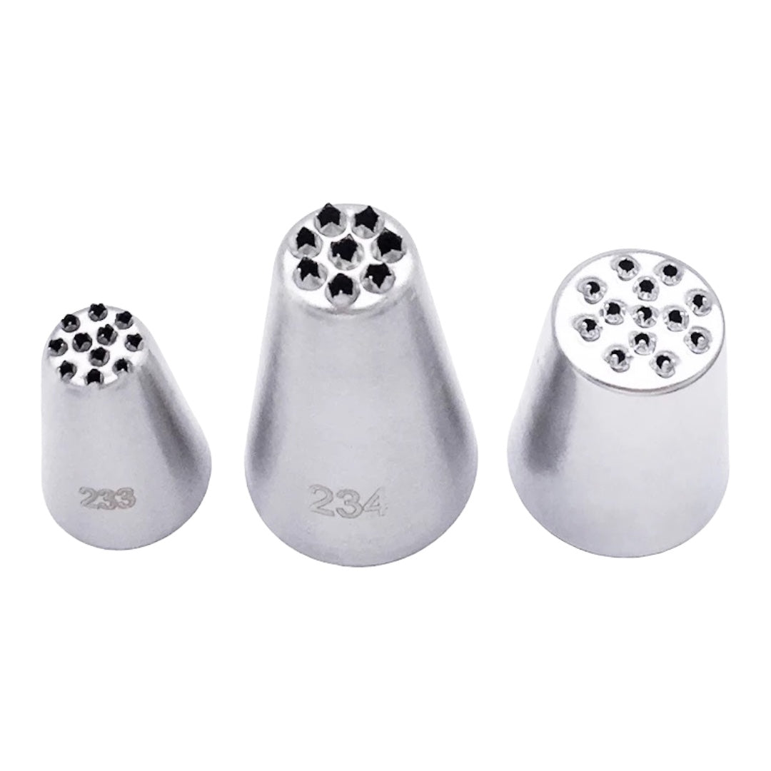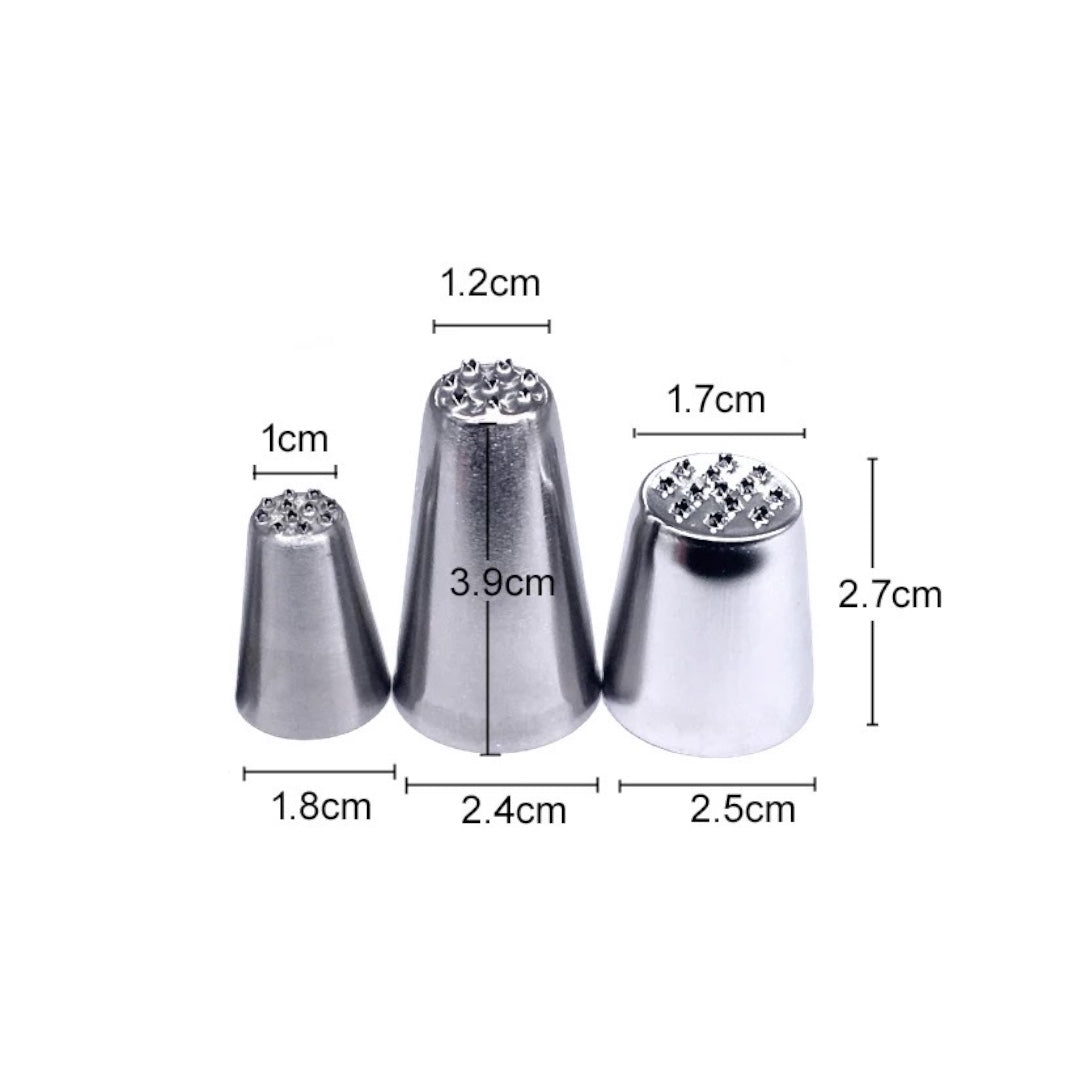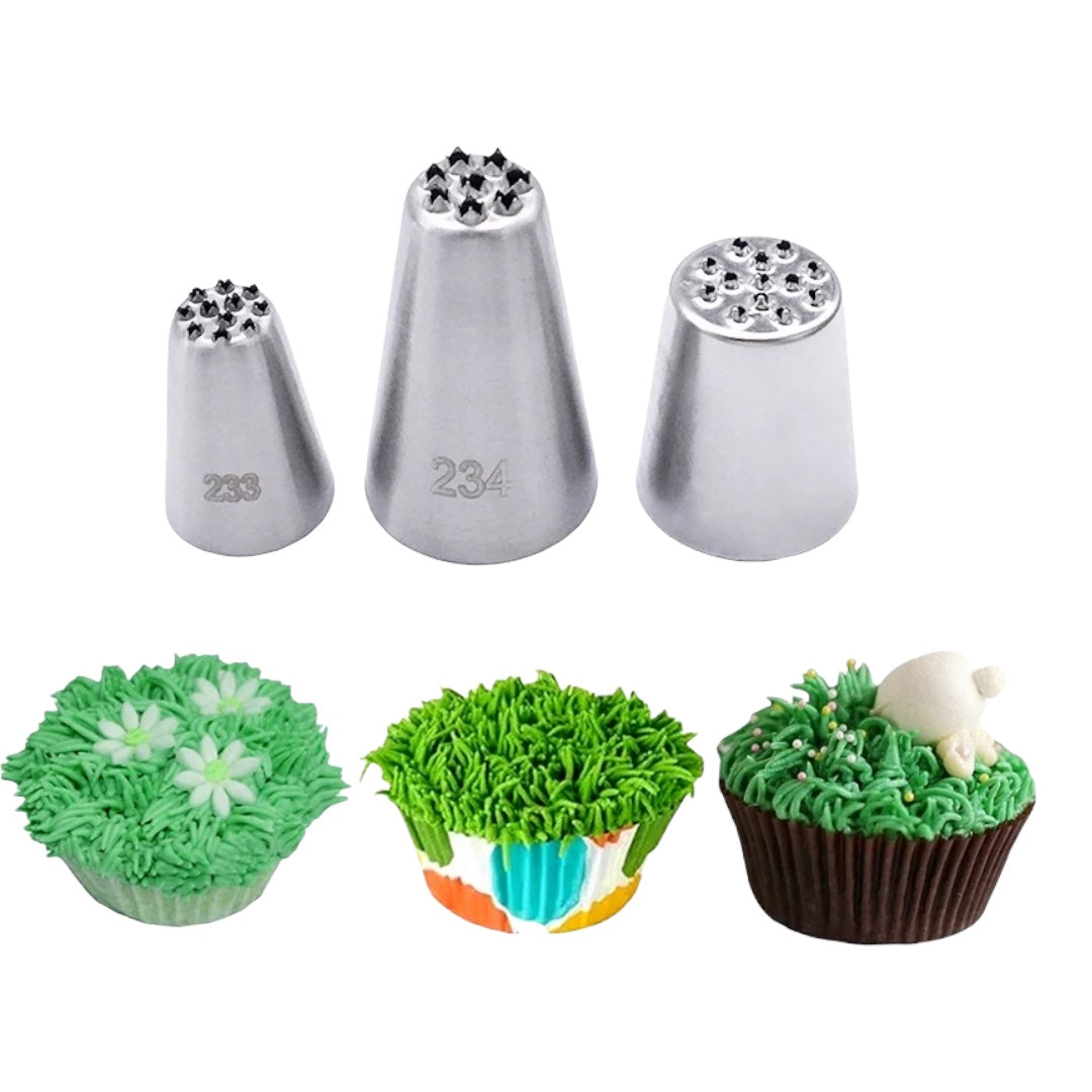 🌿🍰 ¡Texturas naturales al instante! Este set de 3 boquillas de césped incluye tres tamaños diferentes, permitiéndote crear acabados variados en textura, densidad y detalle, perfectos para simular pasto, cabello, pelaje o efectos decorativos en tortas y cupcakes.