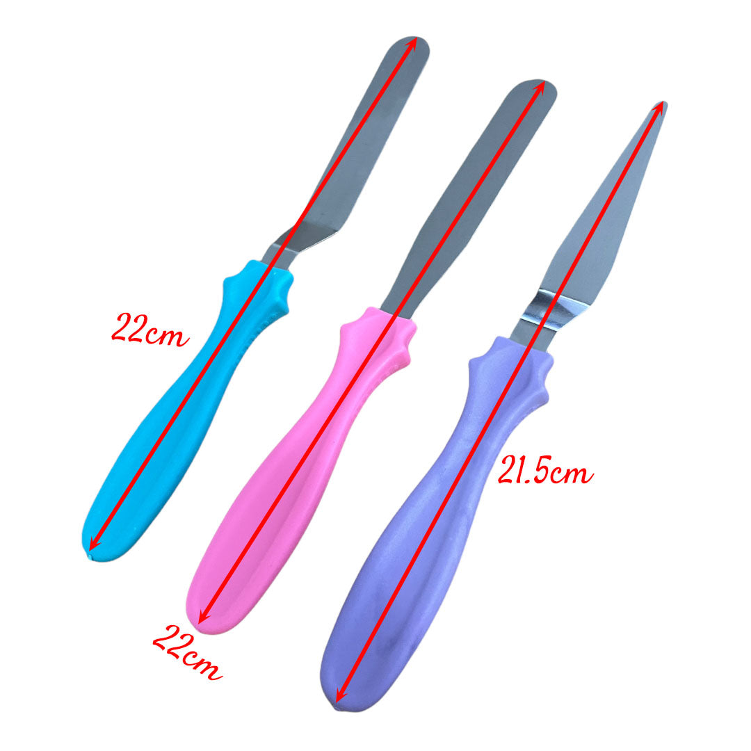 Material: Puntas en acero inoxidable y mangos de plástico resistente de uso alimentario. 🎨🔪 ¡Tu mejor aliado para acabados impecables! Este set de 3 espátulas profesionales incluye las tres formas...