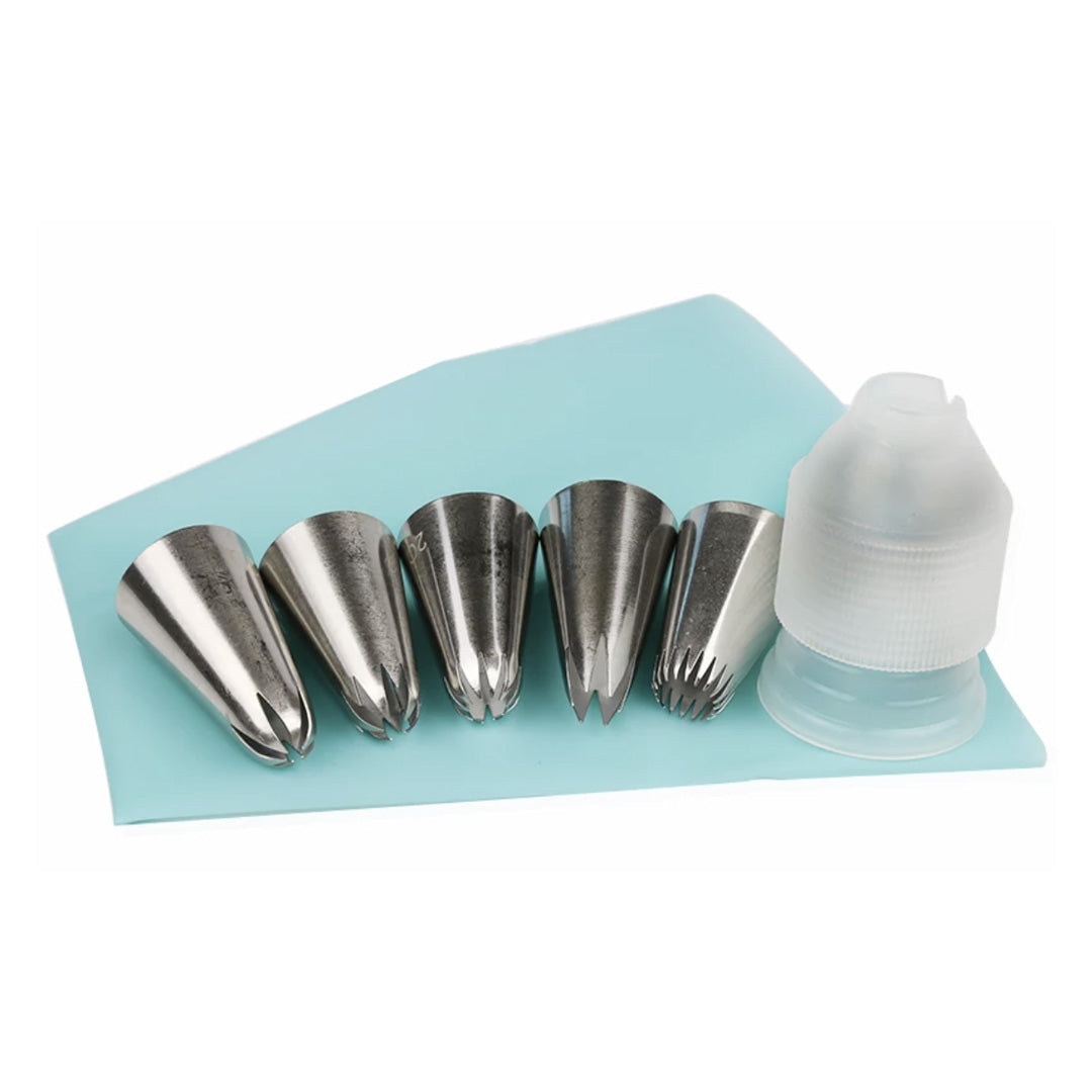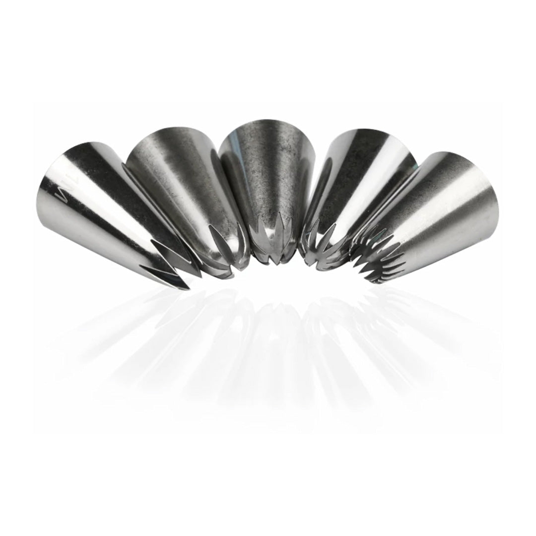 Con este set puedes hacer diseños como estrellas, flores, bordes, rosetones y mucho más en tortas, cupcakes y galletas.