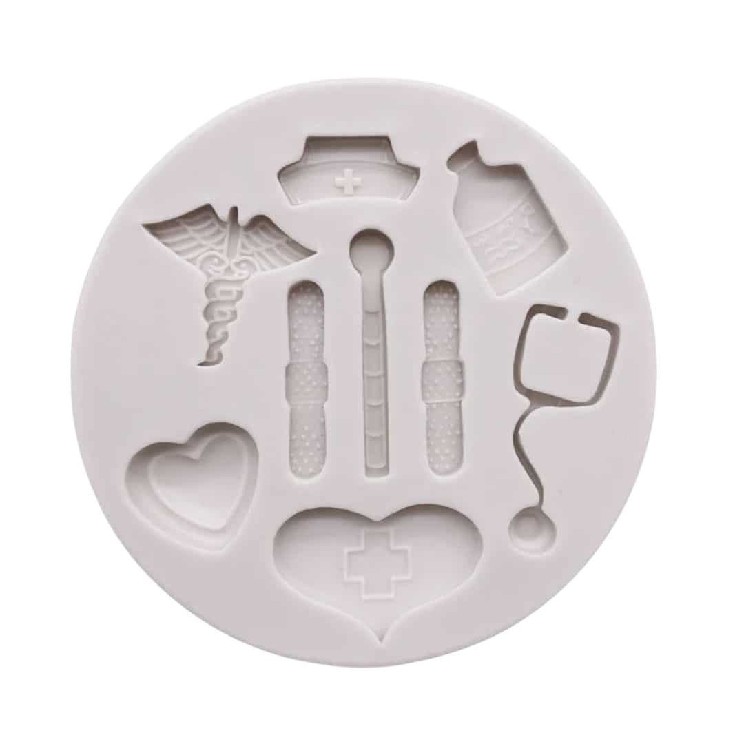 ¡Un homenaje dulce para los héroes de la salud! Este molde push con diseños médicos surtidos incluye figuras como estetoscopios, pastillas, jeringas, botiquines y más. Es ideal para crear decoraciones temáticas en fondant, chocolate, mazapán o resina.