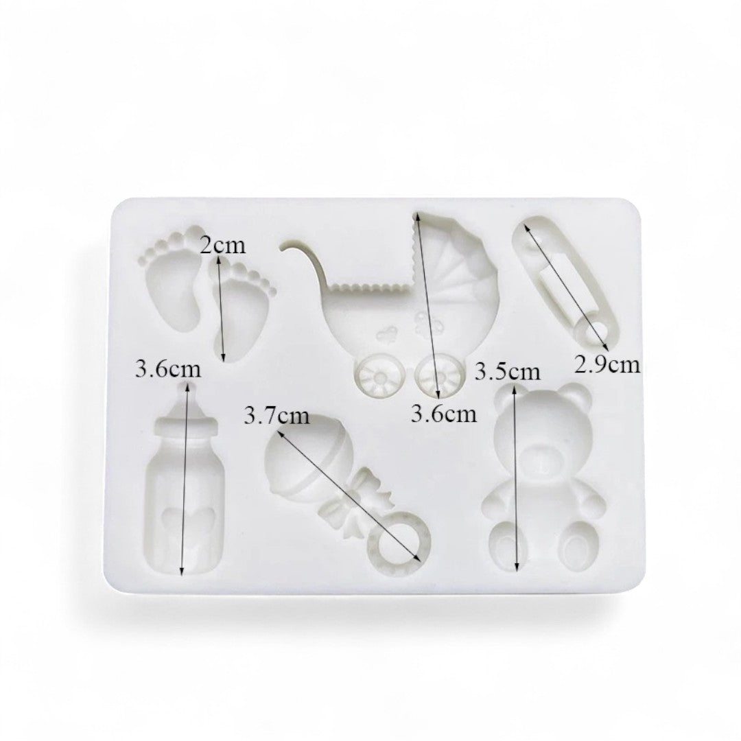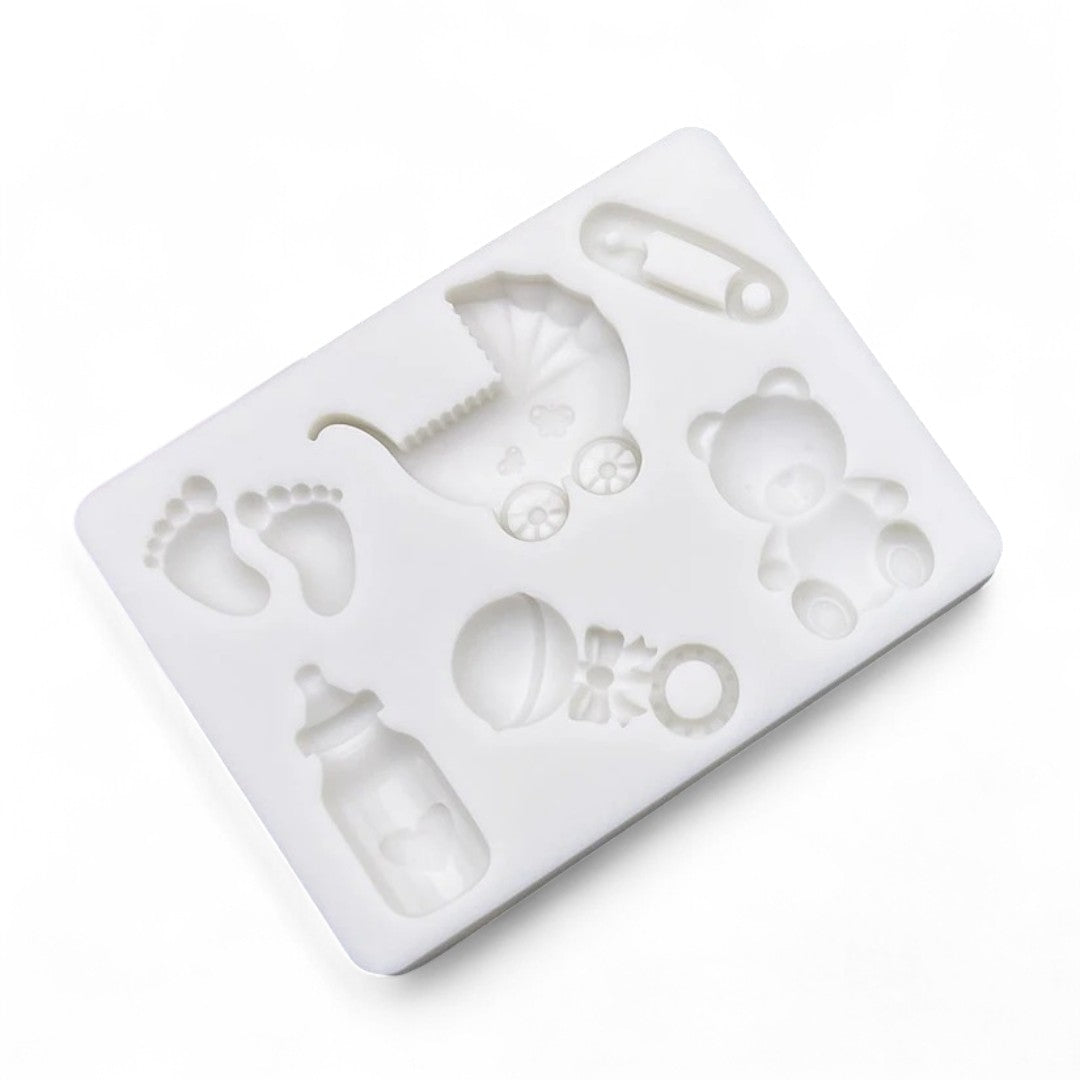 👶🎀 ¡Celebra la llegada del bebé con dulzura y estilo! El Molde Silicona Baby Shower incluye una variedad de figuras pequeñas relacionadas con el mundo de los bebés, como biberones, cochecitos, ositos, chupones y más, ideales para crear decoraciones tiernas y temáticas en fondant, chocolate, pasta de goma, mazapán o resina.