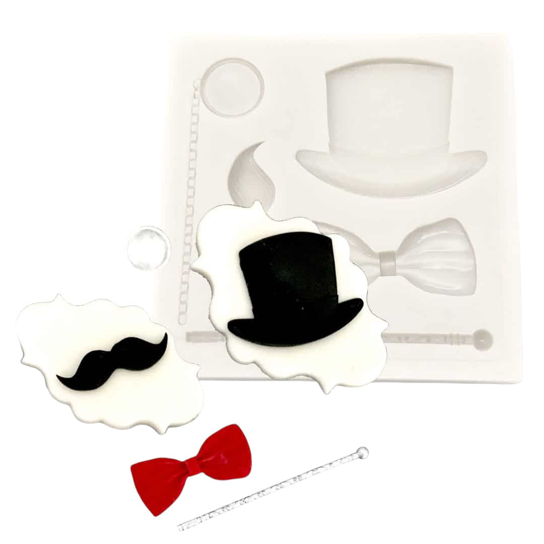 Funciona con fondant, chocolate, mazapán o resina, y es ideal para decorar tortas, cupcakes, fresas cubiertas y más en celebraciones como cumpleaños masculinos, día del padre o despedidas de soltero.