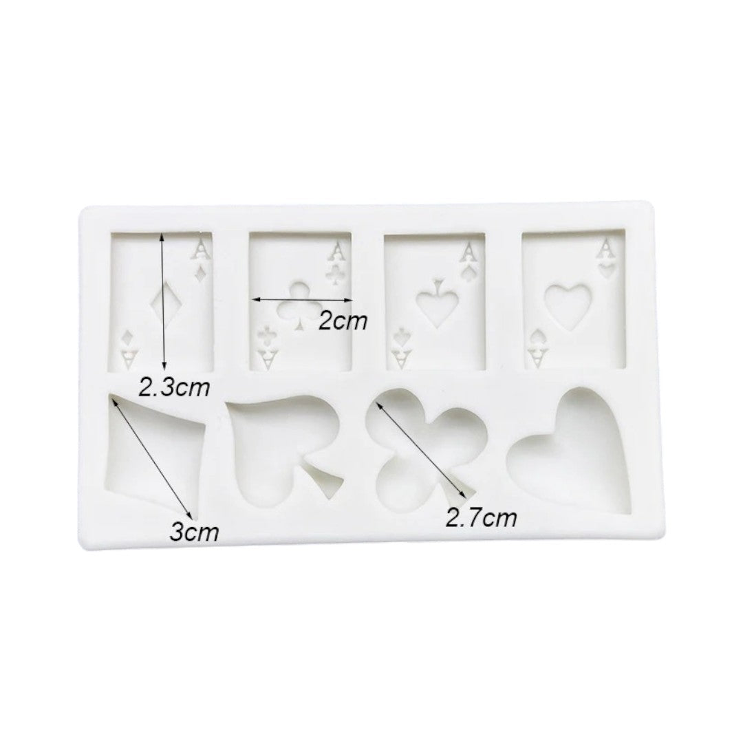🃏♣️ ¡Ideal para jugadas dulces y creativas! El Molde Silicona Cartas de Póker incluye ocho cavidades: cuatro cartas (los ases de cada pinta: corazones, diamantes, tréboles y picas), y cuatro símbolos individuales de cada pinta, perfectos para personalizar tus postres con una temática de casino, juegos, fiestas Las Vegas o magia.