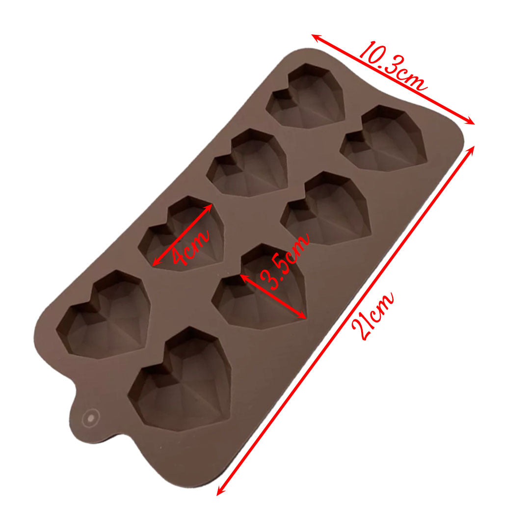 ¡Llena tus creaciones de amor y elegancia! Este espectacular molde de silicona con 8 cavidades en forma de corazones prismáticos es perfecto para crear bombones, toppers y decoraciones en chocolate, fondant, pasta de goma, mazapán y más.
