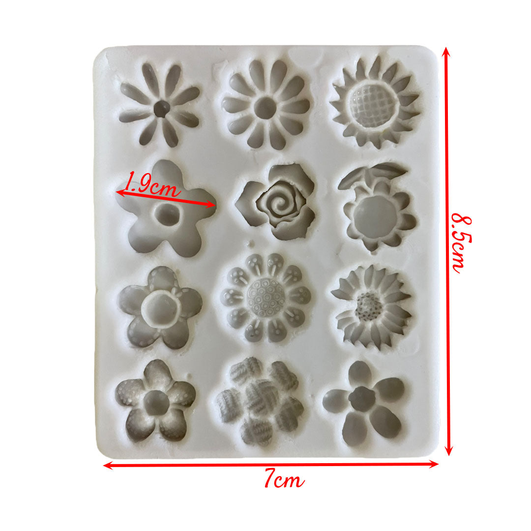 🌸🌼 ¡Un jardín completo en la palma de tu mano! Este encantador molde de silicona con 12 cavidades de flores mini surtidas te permite crear decoraciones delicadas y coloridas en fondant, chocolate, mazapán, pasta de goma o resina, ideales para detalles florales llenos de variedad y encanto.