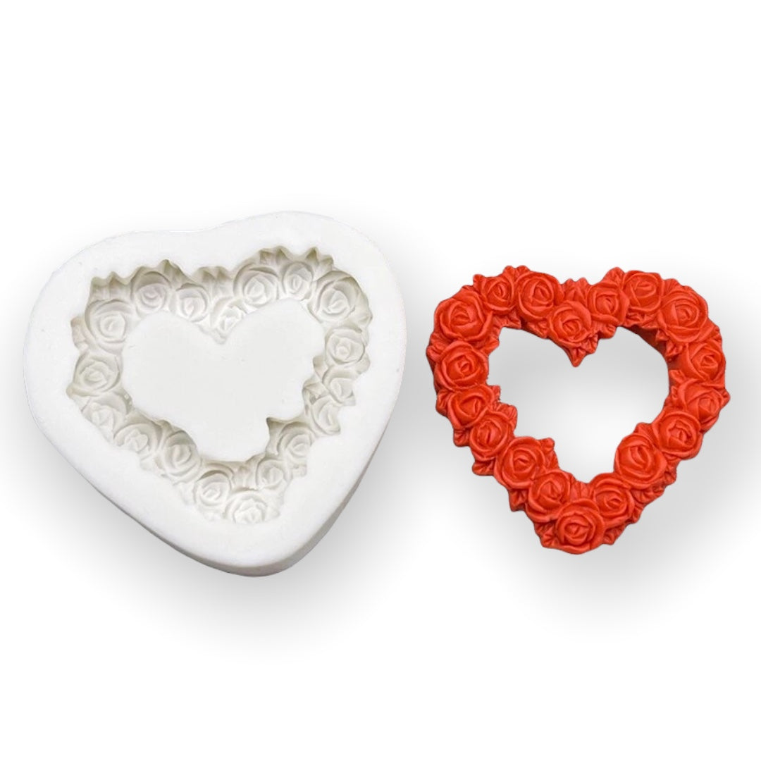 🌹💗 ¡Amor en cada detalle! Este delicado molde de silicona con forma de corazón tipo marco decorado con textura de rosas es perfecto para crear apliques románticos y elegantes en fondant, chocolate, pasta de goma, mazapán, resina.