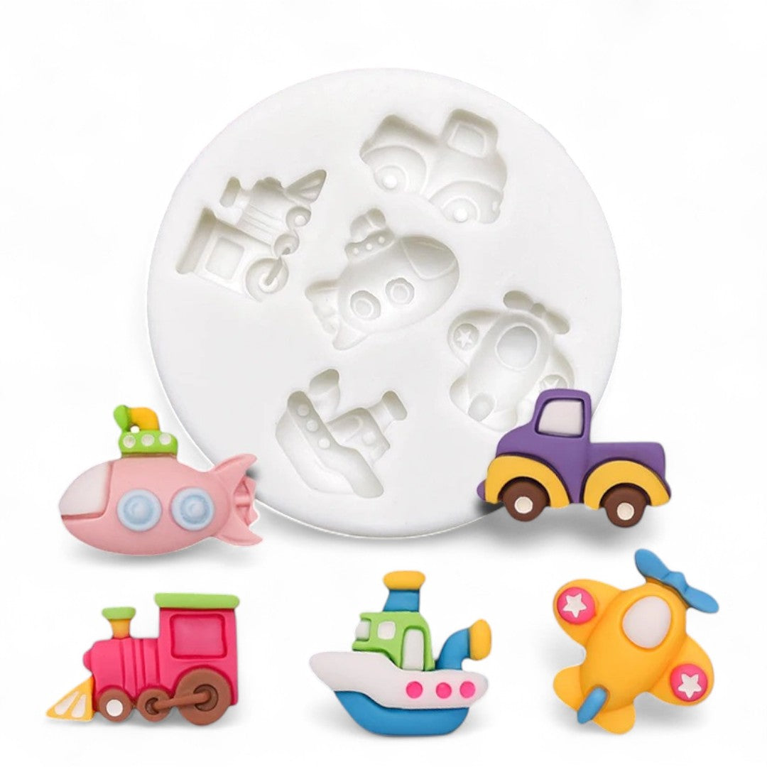 🚂🚢✈️ ¡Viaja con imaginación en cada decoración! El Molde Silicona Medios de Transporte Mini incluye 6 cavidades con diseños de vehículos infantiles: tren, avión, submarino, camión, barco y helicóptero. Cada figura tiene excelente definición, ideal para proyectos temáticos infantiles, cumpleaños, baby showers o kits escolares.