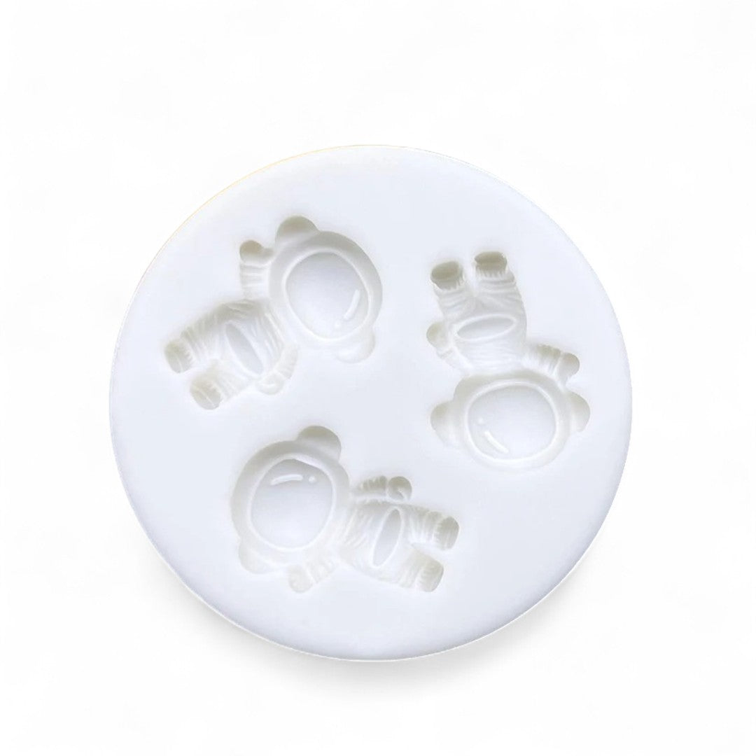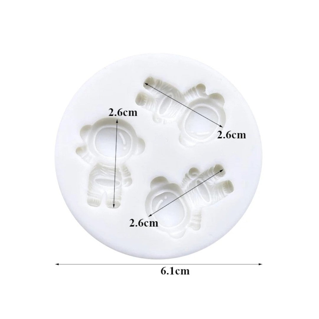 👨🚀✨ El Molde Silicona Mini Astronautas x 3 incluye tres cavidades con figuras detalladas de astronautas, ideales para decorar con un toque espacial y divertido tus creaciones en fondant, chocolate, pasta de goma o isomalt.