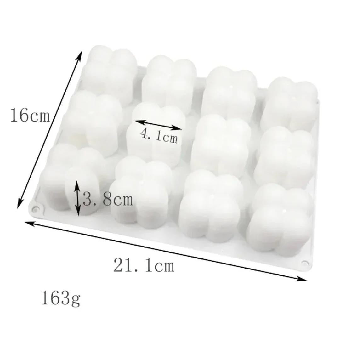 • Molde de 12 cavidades con diseño de burbujas 3D.