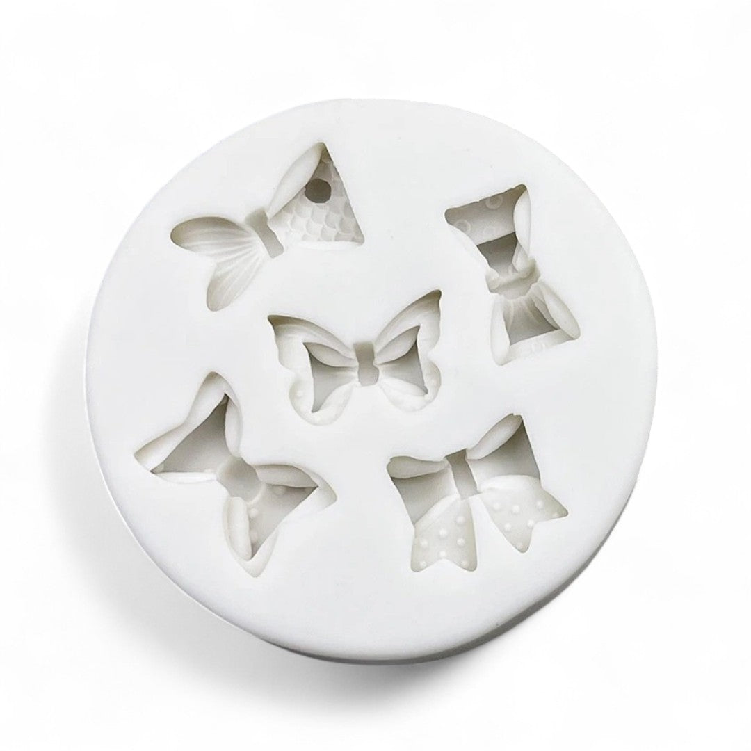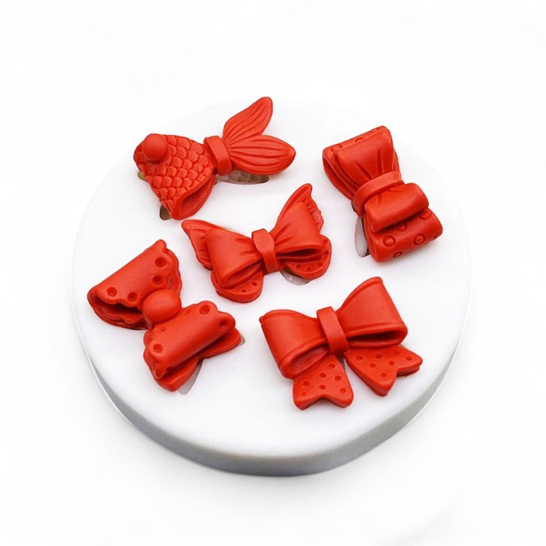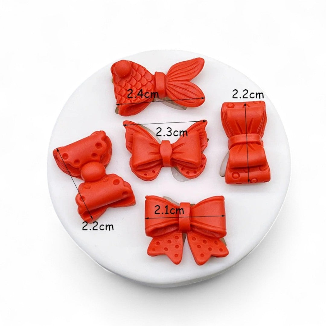 🎀✨ Este molde push de moños mini incluye 5 cavidades con diseños variados y delicados, ideales para crear apliques decorativos sobre fresas con chocolate, cupcakes, mini tortas, donas, cake sicles y más. También es perfecto para velas, jabones o proyectos con resina.