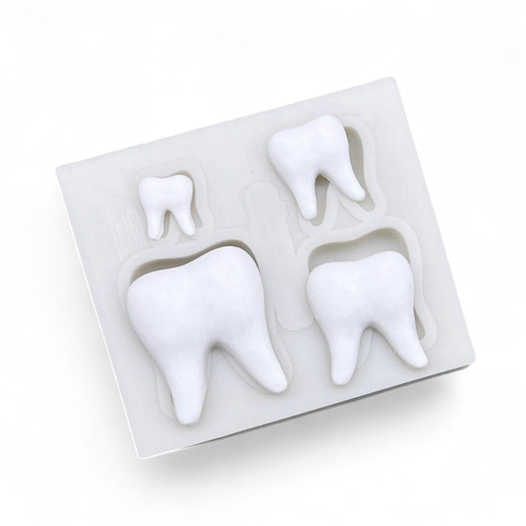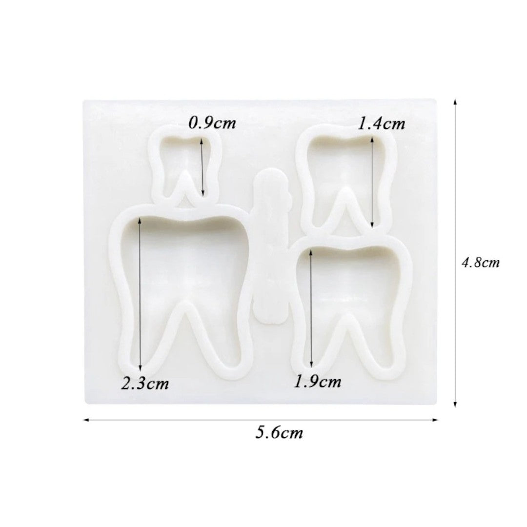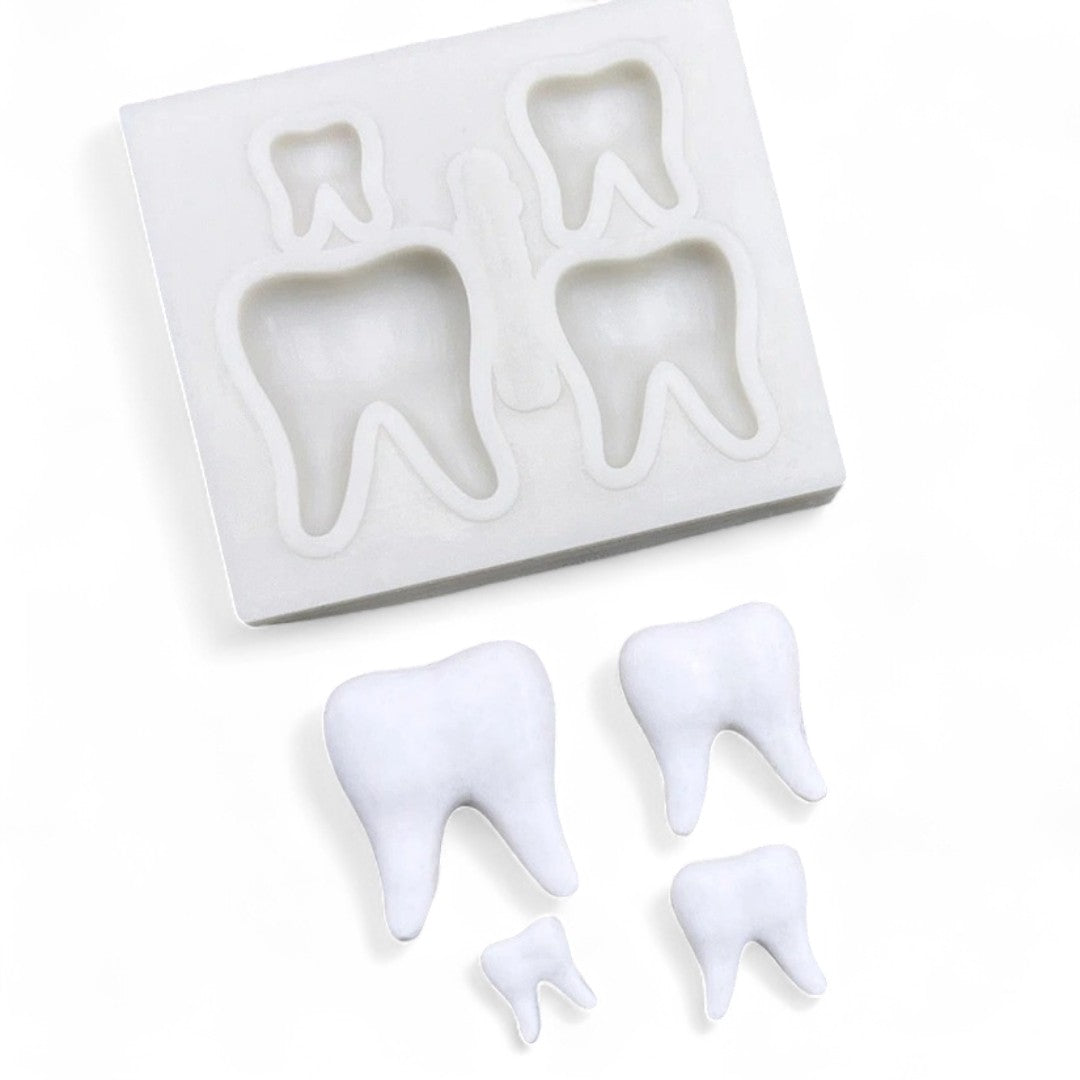 🦷✨ Este molde en silicona con 4 cavidades de muelas en diferentes tamaños es ideal para crear decoraciones temáticas de odontología, kits creativos o tortas personalizadas para dentistas y estudiantes de salud oral.