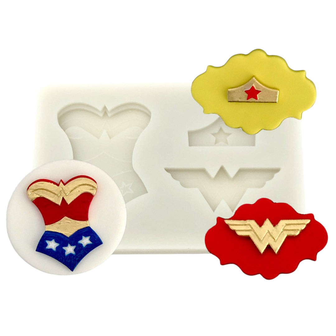 ¡Poder femenino en cada bocado! Este increíble molde push con diseño de la Mujer Maravilla es ideal para crear decoraciones en fondant, chocolate, mazapán o resina que resalten en fiestas de niñas, cumpleaños temáticos, tortas de superhéroes y más.