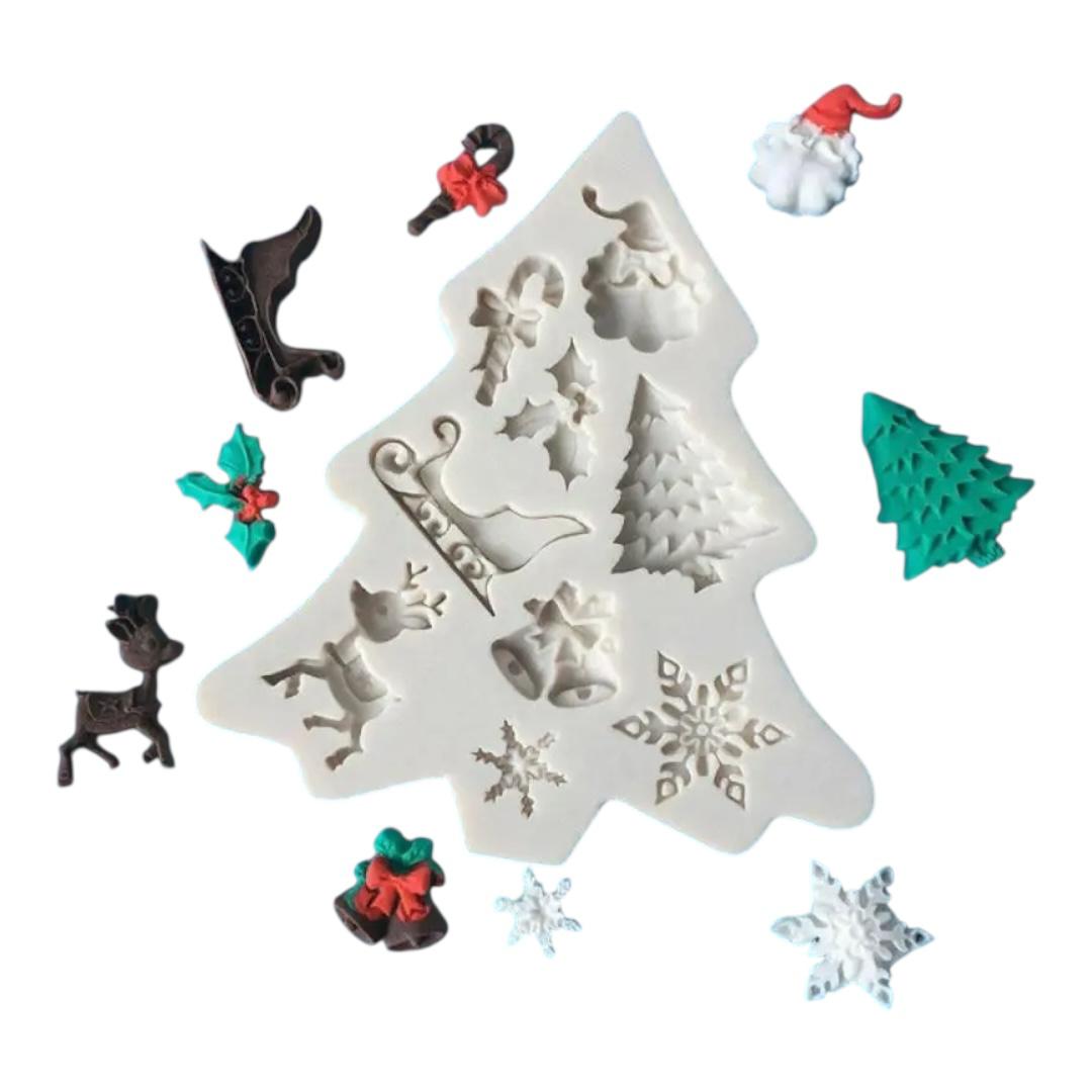 ¡Haz que la magia navideña cobre vida en cada detalle! Este molde en forma de árbol contiene 9 mini figuras navideñas adorables para decorar tus postres: reno, copo de nieve, trineo, campanas, pino, bastón y más. Perfecto para fondant, chocolate, mazapanes o resina, este molde es ideal para crear apliques que llenan de encanto tortas, cupcakes, galletas y fresas cubiertas de chocolate.