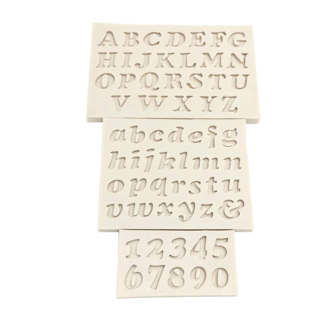 Molde Silicona Alfabeto Mini Mayúscula, Minúscula y Números (Set x 3 Moldes)