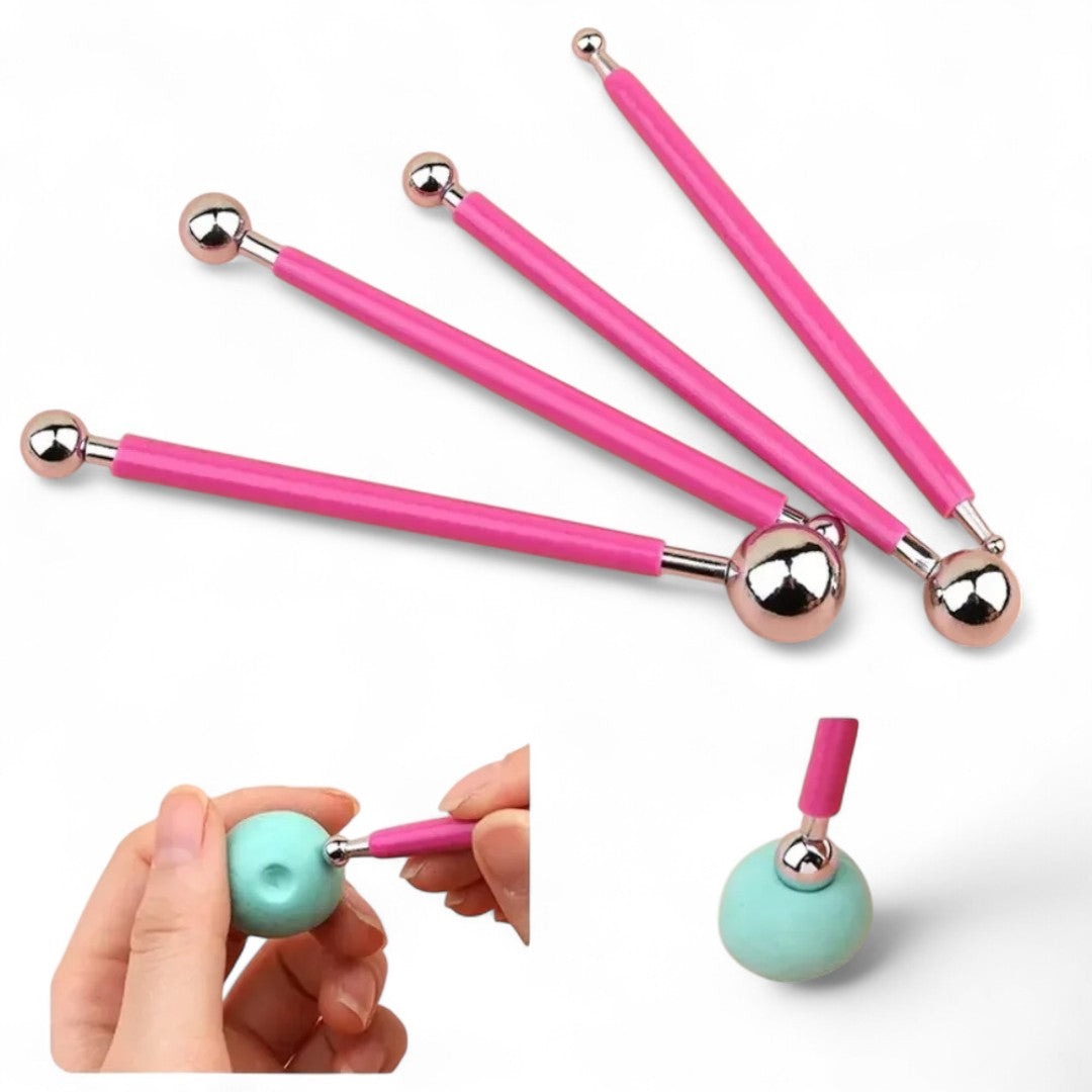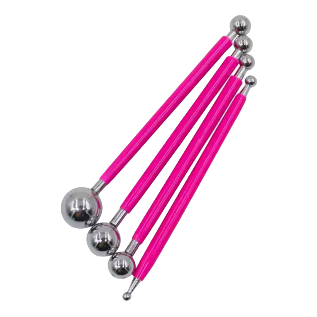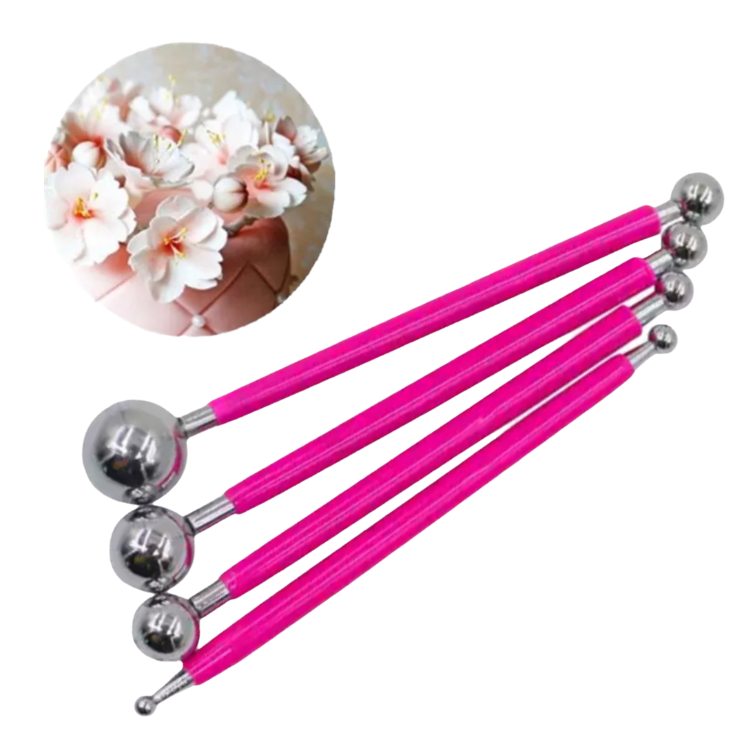 ⚙️🌸 ¡Modela con precisión y suavidad! Este set de 4 repujadores con punta de bola en acero inoxidable es ideal para dar forma, volumen y textura a fondant, pasta de goma, porcelanicrón, mazapán, flores comestibles y figuras decorativas.
