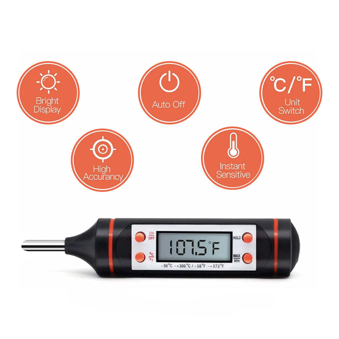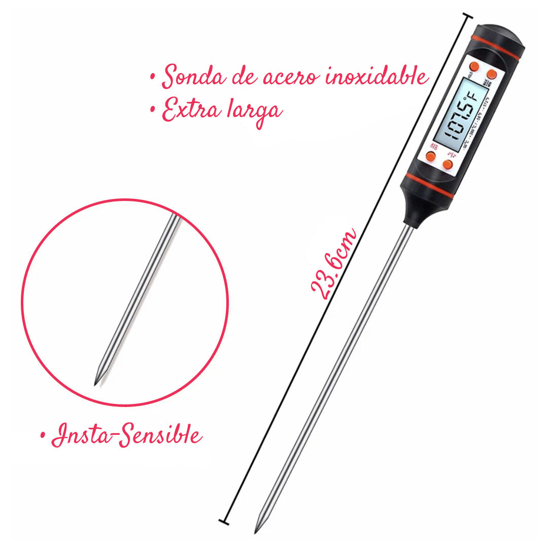 🌡️ ¡Precisión instantánea para tus recetas! Este termómetro digital tipo punzón es ideal para medir temperaturas internas en carnes, almíbares, chocolate, panes, frituras y más.